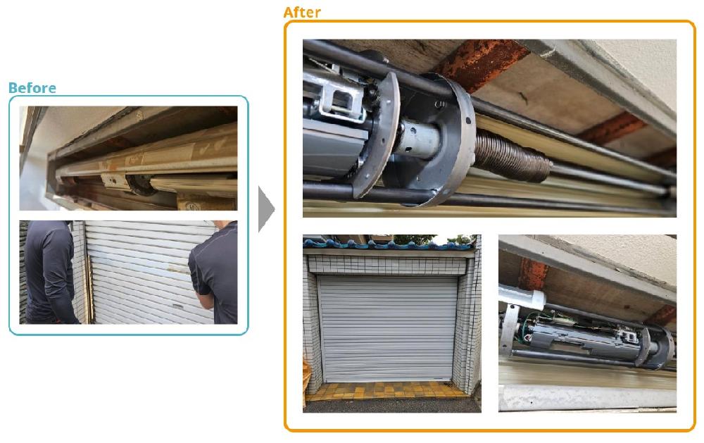 「設置後20年以上経っている電動シャッターが途中で止まってしまい困っている」という相談をいただきました。だいぶ経年していることもあり、全交換も仕方ないと考えていらっしゃいましたが、可能ならパーツ交換や修理対応をご希望いただきました。